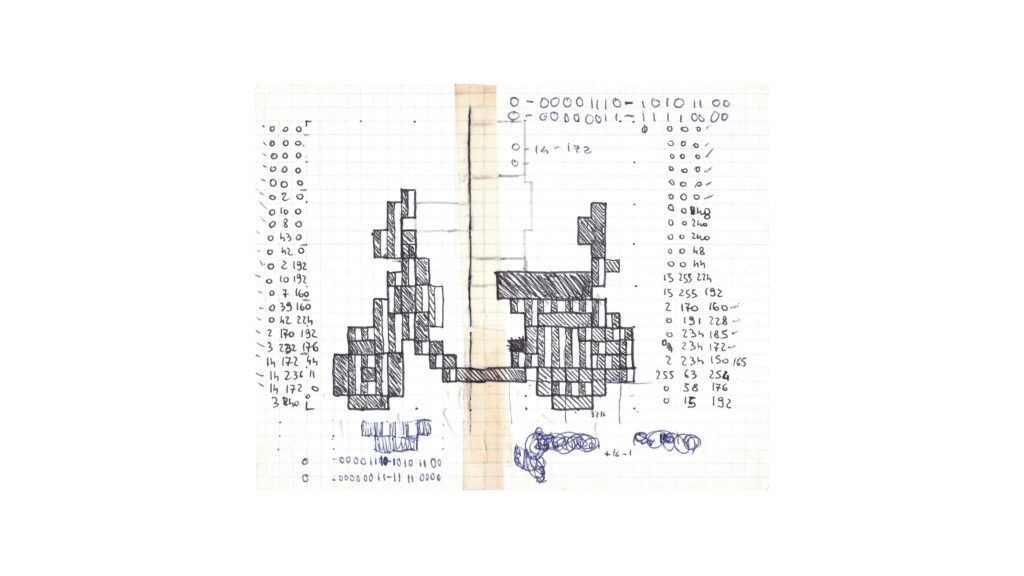 Carlo Santagostino racconta la sua esperienza di programmatore, grafico e game designer in quegli anni pioneristici dove per vedere un risultato a schermo bisognava inserire centinaia di numeri sul proprio computer, partendo da disegni su block-notes a quadretti e faticose conversioni tra numeri binari ed esadecimali. Riuscire a cavarsela con i pochi pixel e i pochi colori a disposizione, usabili con limitazioni oggi inimmaginabili, era una continua sfida per poter realizzare qualcosa che catturasse l’attenzione del pubblico.